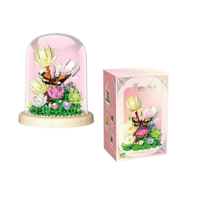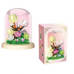 Sukurkite nuostabią gėlių kompoziciją su šiuo Magnolia Inspired Flower rinkiniu! Šis elegantiškas dekoratyvinis rinkinys sujungia subtilias gėles ir spalvingą drugelį po skaidriu kupolu, sukuriantį įspūdingą, gyvybingą vaizdą.