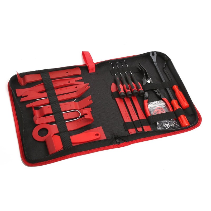 Didelis komplektas leis išsirinkti tinkamą traukiklį, pašalins riziką nulaužti kabliuką, subraižyti ar sugadinti apmušalus Taip pat praverčia išimant automobilio radiją, elektroninę įrangą