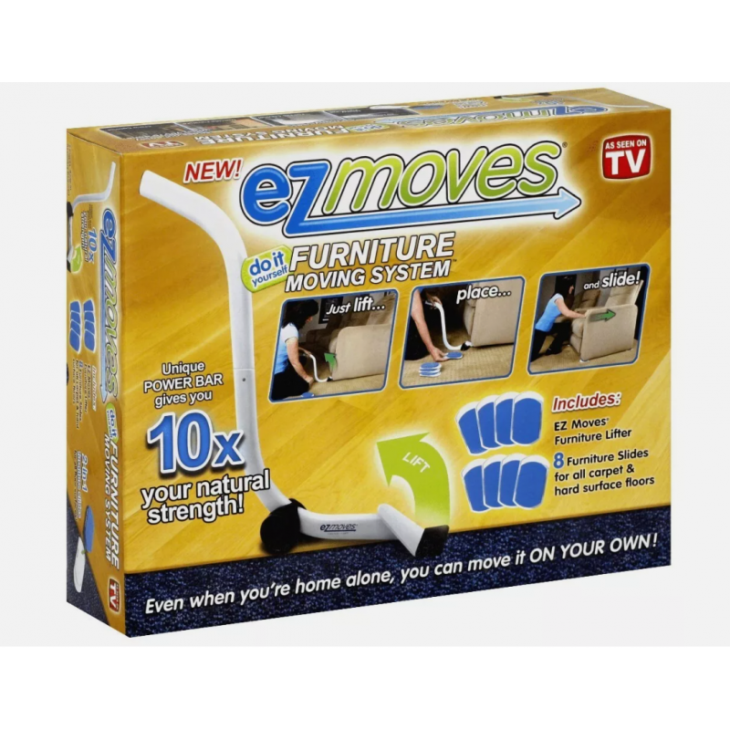 EZ Moves baldų keltuvas kartu su specialiais slystuvais pavers net sunkiausių baldų perkėlimą greitu ir paprastu procesu. Unikali svirties sistema suteikia iki 10 kartų daugiau jėgos nei įprastai, tad viską atliksite be vargo ir saugiai.