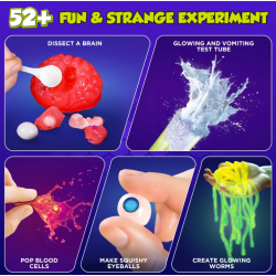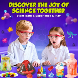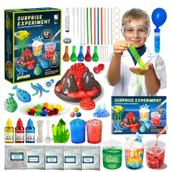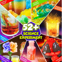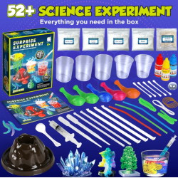Puiki Kalėdų ar gimtadienio dovana 4–12 metų vaikams! Šis rinkinys suteikia daugiau nei 52 smagius ir įtraukius eksperimentus – nuo ugnikalnio išsiveržimo, švytinčių mikstūrų iki juokingo „akies“ eksperimento. Visi reikalingi ingredientai ir aiškios instrukcijos jau įtraukti, todėl vaikai gali saugiai tyrinėti chemijos, fizikos ir žemės mokslų pasaulį.