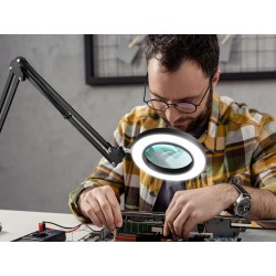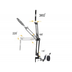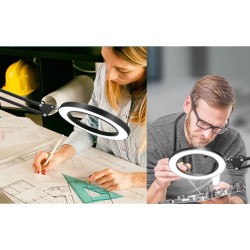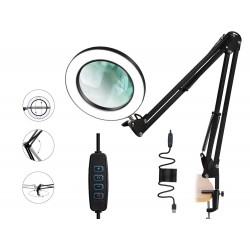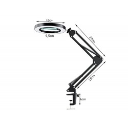 Žiedinė lempa su viduryje esančiu padidinamuoju stiklu leis patogiai atlikti grožio procedūras. Lempa turi 3 standartines šviesos spalvas: šalta balta, natūrali balta, šiltai balta spalvos. Šviesos intensyvumas reguliuojamas 10 lygių.