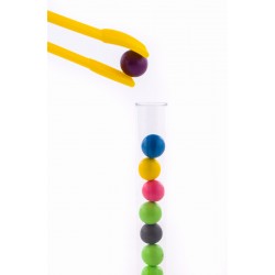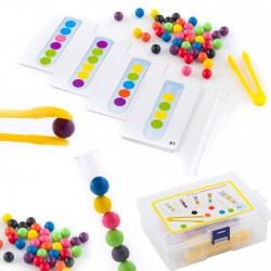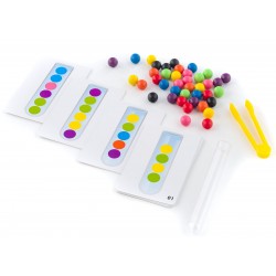 Žaisti su spalvotais kamuoliukais yra labai paprasta ir įdomu. Žaisdami vieni, su bendraamžiais ar tėvais, vaikai turi atkartoti kortelėje pateiktą kompoziciją, sudėdami kamuoliukus į mėgintuvėlį teisinga tvarka.