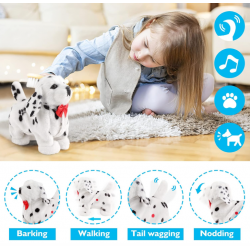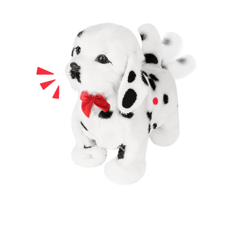 Švelnus ir mielas, judantis šuo Dalmantinas. Šuniukas reaguoja į garsą - suplojus arba paglosčius, pradeda inkšti ir judinti galvą. Paspaudus mygtuką ant šuniuko šono, jis pradeda eiti ir švelniai loti. Pasigirsta graži muzikėlė.
