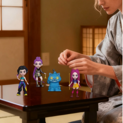 „K-Pop Demon Hunters“ figūrėlių rinkinys, skirtas veiksmo ir nuotykių gerbėjams! Šis rinkinys atkuria populiarią K-pop merginų grupę, kuri slapta medžioja demonus, sujungiant popmuzikos stilių ir slaptąsias misijas.