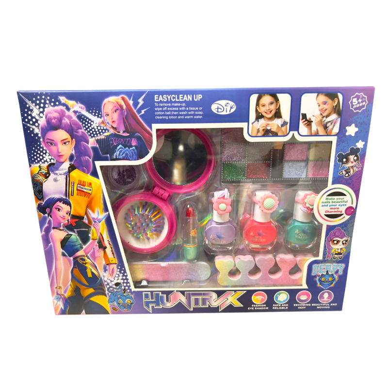 Žavus makiažo priemonių rinkinys patiks kiekvienam vaikui, mėgstančiam žaisti su stiliumi ir makiažu. Paprastai mažieji mėgsta pasiimti kosmetikos priemonių iš savo mamų, seserų ar senelių. O mamai ne visada patinka, kai jos mėgstami lūpų dažai, akių šešėliai ar blakstienų tušas vienu ypu atsiduria ant sienų, baldų ar baltos sofos. Todėl šis rinkinys - puiki išeitis.