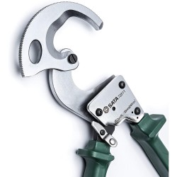 Specialus terkšlinis mechanizmas apsaugo peilius ir pjauna varinius arba aliumininius kabelius iki 240mm²(Ø36mm Cu+Al)