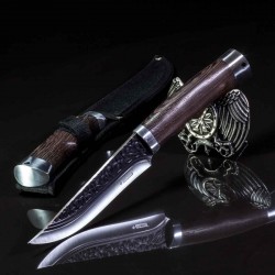 Gausiai dekoruotas medžioklinis peilis visiems kultūros ir medžioklės tradicijų gerbėjams.