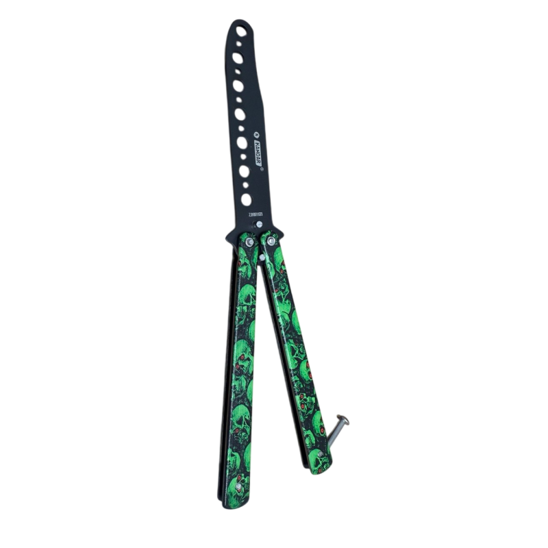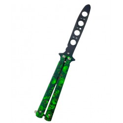 Saugus sulankstomas peteliškės tipo treniruočių peilis leis treniruotis nebijant susižeisti. Puikus pasiūlymas pradedantiesiems. Suapvalinti peilio ašmenys yra visiškai buki ir be aštrių briaunų. Peilis puikiai telpa rankoje ir yra gerai subalansuotas, o tai neabejotinai pagerina naudojimo patogumą. Pagamintas iš kokybiško metalo, kuris yra atsparus rūdims ir neslysta rankoje. Peilio geležtė turi skyles, kurios sumažina oro pasipriešinimą ir padidina sukimo rankoje greitį. Tai labai stilingas ryškių spalvų treniruočių peilis.
