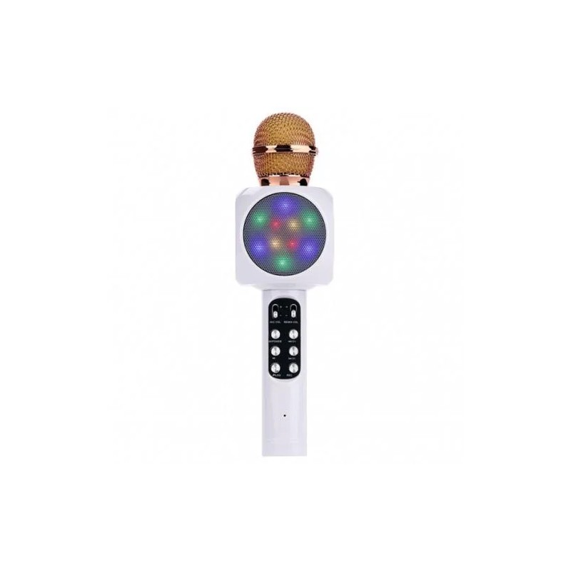 Karaokė mikrofonas WS-1816. Mikrofonas tinkamas dainuojant karaokę. Mikrofonas gali būti prijungtas prie įvairių įrenginių naudojant Audio laidą su galimybę per mikrofoną leisti muziką per įmontuotą galingą garsiakalbį. Dėl Fm modulio galėsite klausytis savo mėgstamų radijo kanalų, o dėl telefono valdymo mygtuku, galėsite fotografuoti telefonu nuotoliniu būdu. Mikrofonas turi Bluetooth funkciją su kurią galėsite prisijungti prie įvairių Bluetooth įrenginių (telefonų, planšečių, kompiuterių) ir tokiu būdų leisti muziką per jį. Įrenginys turi LED apšvietimą.