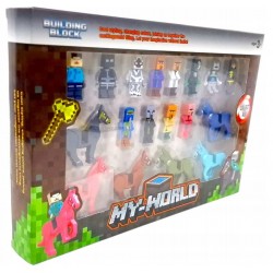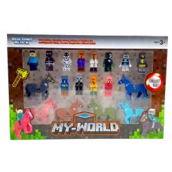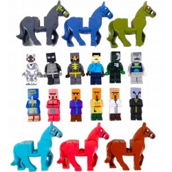 Populiaraus kompiuterinio žaidimo Minecraft veikėjų rinkinys. Rinkinį sudaro 18 figūrėlių: 12 žmogeliukų ir 6 arkliai. Nauji, įkvepiantys personažai įneš gaivaus oro į jūsų LEGO detalių pasaulį ir padės kurti naujas istorijas bei scenas iš mėgstamų filmų.