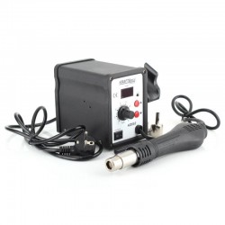 - Į komplektą įeina: 858D litavimo stotelė, apvalūs antgaliai 4.4, 7 ir 9 mm, BGA 12 x 12 mm antgalis