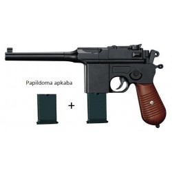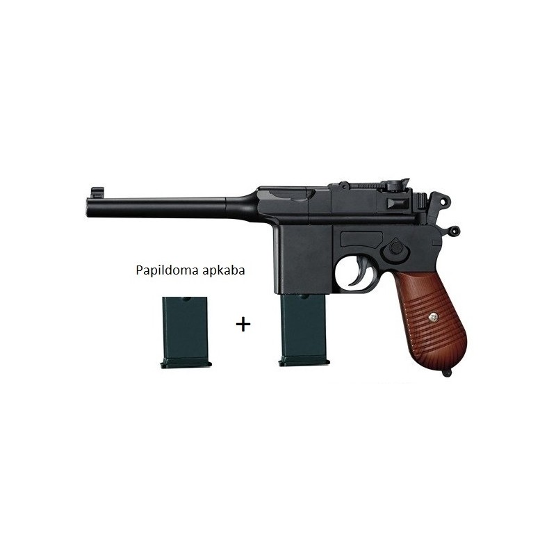 Metalizuotas imitacinis "Mauser" orinis/spyruoklinis pistoletas, šaudantis 6 mm plastikiniais šratukais. Kokybiškai sukonstruotas vidaus mechanizmas leis mėgautis ginklu ilgą laiką.