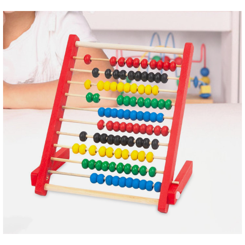 Medinė skaičiuoklė (Abakas) edukacinis žaislas, skirtas vaikams nuo 3 metų amžiaus. Skaičiuoklė turi spalvingus karoliukus kurie pritraukia vaiko dėmesį.