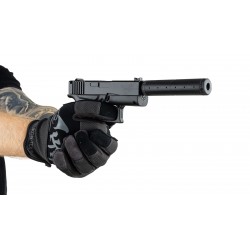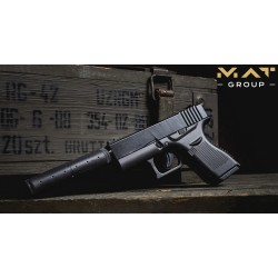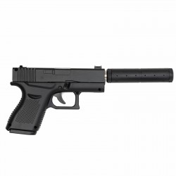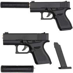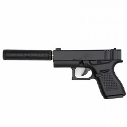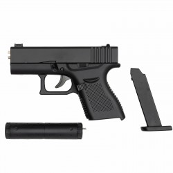 Kokybiškas, metalizuotas pistoletas su duslintuvu šaudantis 6mm plastikiniais šratukais.