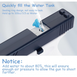 Žaislas veikia pagal paprastą rankinį mechanizmą, leidžiantį nuspaudus gaiduką iššaukti nenutrūkstamą vandens srovę. Dėl baterijos maitinimo nebuvimo pistoletas yra be rūpesčių ir bet kada paruoštas naudoti. Pripildymo anga leidžia greitai papildyti vandens, kad karštomis dienomis būtų galima nepertraukiamai linksmintis.