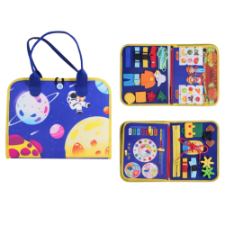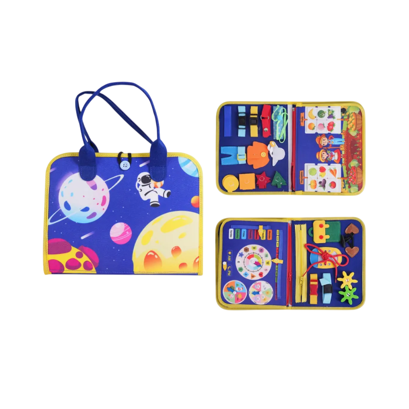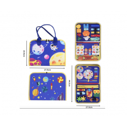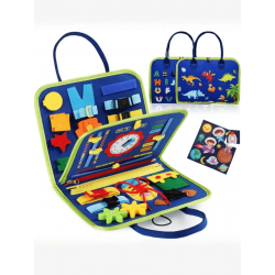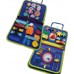 Sensorinis manipuliacinis įgūdžių lavinimo lagaminėlis yra puikus įrankis, skatinantis savarankišką žaidimą ir padedantis vaikui lavinti pagrindinius įgūdžius bei kūrybiškumą. Šis lagaminėlis padeda sužadinti vaiko pojūčius ir lavinti rankinius įgūdžius. Lagaminėlis pagamintas iš minkšto, malonaus liesti veltinio ir yra patogus nešiotis su savimi į keliones. Rinkinys apima įvairias formas ir tekstūras, kurios skatina lytėjimo jausmą, taip pat raidžių komplektą, leidžiantį vaikui formuoti žodžius pritvirtinant jas prie velcro juostos. Šis sensorinis – manipuliacinis lagaminėlis padeda lavinti tokius įgūdžius kaip užsisegimas, raištelių susirišimas ir daugiau.