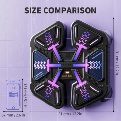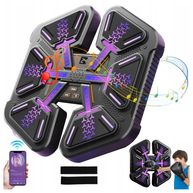 Patirkite unikalų treniruočių potyrį su muzikiniu boksavimo treniruokliu, kuris sujungia smagų judesį su fizine veikla. Šis modernus įrenginys suteiks iššūkių visiems – nuo pradedančiųjų iki profesionalų. Įjungus groja ritminga muzika. Taikinys turi keturis apšviečiamus trenkimo taškus, kurie užsidega atsitiktinai ir į kuriuos reikia greitai pataikyti. Bokso aparatas puikus užsiemimas namie.