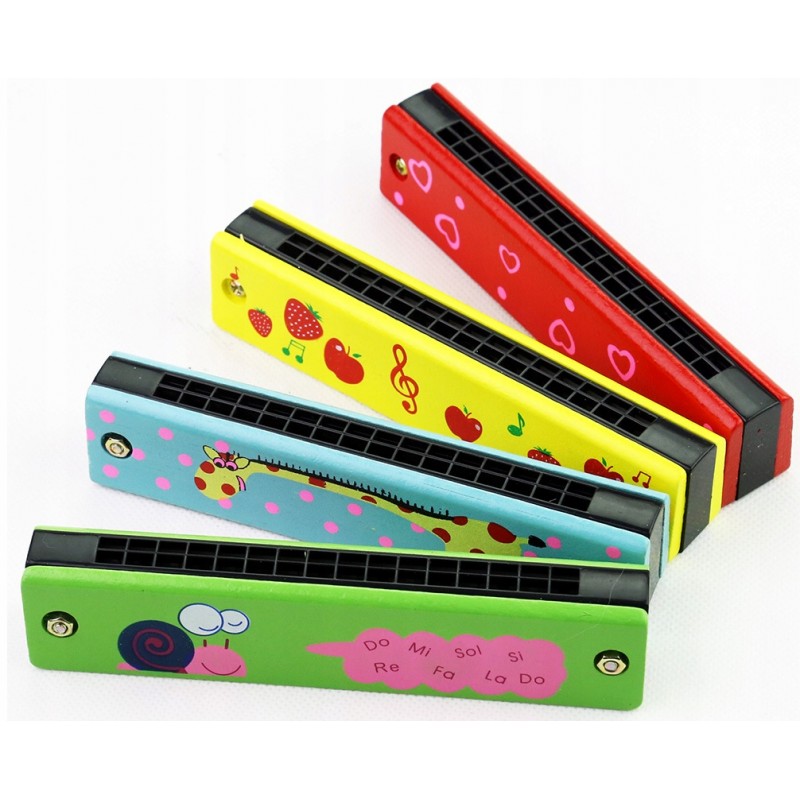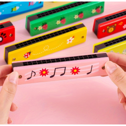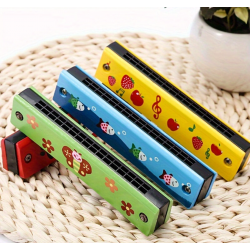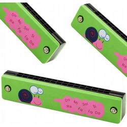 16 skylučių medine lūpine armonika, kuri yra puikus pirmasis muzikinis instrumentas mažiesiems muzikos mėgėjams.