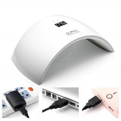 Įmontuotas automatinis rankos jutiklis, kuris įjungia lempą.LCD ekranas rodo džiovinimo trukmę. Tinka manikūrui bei pedikiūrui, lempos šviesa nekenkia akims. Gelinio lakavimo lempoje sumontuoti 15 LED UV diodų, kurių bendra galia - 24W. Lempos maitinimo šaltinis - nuo 220v tinklo arba USB adapteriu.