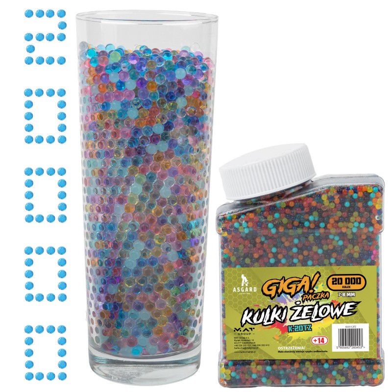 Pasiruoškite smagiems žaidimams su vandens kristalų kulkomis! Šiame rinkinyje rasite apie 20 000 vnt. 7-8 mm dydžio orbeezų, supakuotų patogiame indelyje. Puikus priedas vandens šautuvams ir kitoms pramogoms.