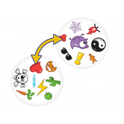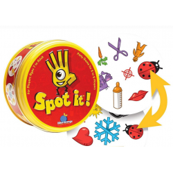 Dobble – atidumo ir reakcijos žaidimas, kuriame turite pirmi pamatyti 2 vienodus paveikslėlius. Žaidėjai traukia korteles ir stebi ant jų pavaizduotus 8 paveikslėlius – jei jų ir priešininko kortelėje pastebėjo tokį patį paveiksliuką, žaidėjas pasako daikto pavadinimą ir pasiima kortelę. Daugiausiai kortelių surinkęs žaidėjas laimi žaidimą.