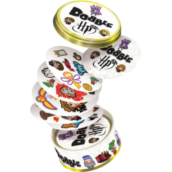 "Dobble Haris Poteris" sujungia kultinį magijos ir burtų pasaulį su vienu populiariausių šeimos žaidimų. Žaidėjai bando pastebėti vienodų simbolių porą tarp dviejų kortelių; tas, kuris pirmas juos randa, gauna tašką! Šioje versijoje rasite stilizuotų vaizdų iš kultinio J. K. Rowling pasaulio: Hario Poterio, Hermionos Granger, Rono Weasley, taip pat lazdelių, būtybių, Hogvartso herbo ir dar daugiau. Ar pavyks juos visus surasti?