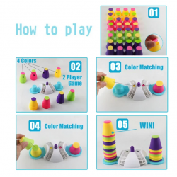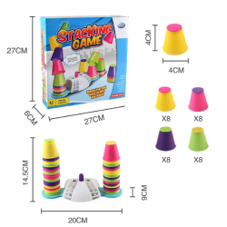 Rinkinį sudaro žaidimo podiumas ir 32 spalvingi puodeliai. Pirmiausia reikia paspausti mygtuką ant podiumo, kad būtų suteikta spalva, nuo kurios pradeda kiekvienas žaidėjas. Žaidėjai turi atsikratyti visų puodelių, bet kad puodelis būtų sukrautas ant kito, jis turi atitikti ankstesnio puodelio spalvą, bet viršutinio dangtelio. Laimi žaidėjas, kuris sudeda visus puodelius.