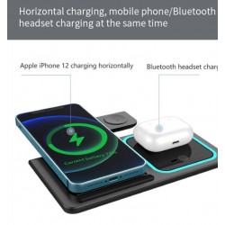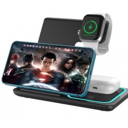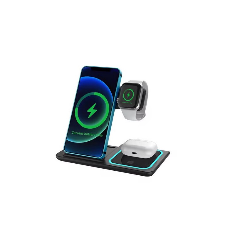 Universalus 3-in-1 belaidis įkroviklis – patogus sprendimas vienu metu įkrauti išmanųjį telefoną, „Apple Watch“ laikrodį ir „AirPods“ ausines. Įrenginys palaiko Qi belaidžio įkrovimo standartą ir veikia tiek su „iPhone“, tiek su „Android“ telefonais, turinčiais belaidžio įkrovimo funkciją.