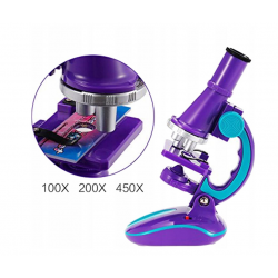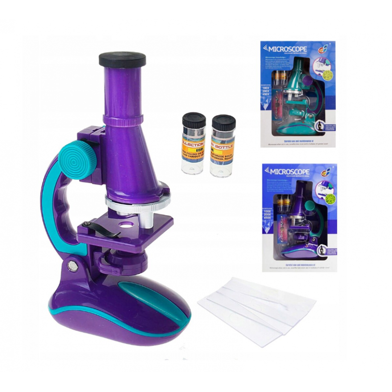 Mokomasis mikroskopo rinkinys skatina mokslinius tyrinėjimus ir atradimus, įdomiai pristato vieną svarbiausių mokslinių įrankių. Objektyvas suteikia galimybę reguliuoti padidinimą, su šiuo mikroskopų galima apžiūrinėti įvairius daiktus juos padidinus 100, 200 ir 450 kartų. Mikroskopas turi savo šviesos šaltinį, todėl išvengiama ilgo aparato nustatymo ir suteikiama galimybė dirbti esant silpnam apšvietimui. Mikroskopo lęšis pagamintas iš plastiko.