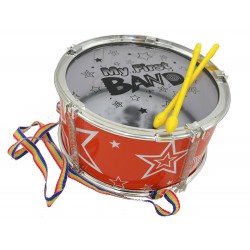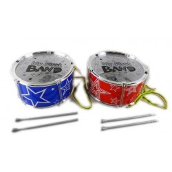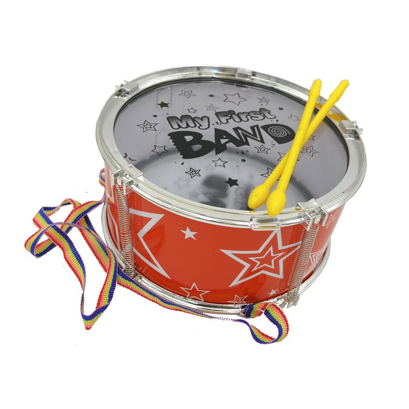 Smagus Vaikiškas žaislas Būgnelis su lazdelėmis. Dekoruotas spalvingų gyvūnėliu paveiksliuku.
