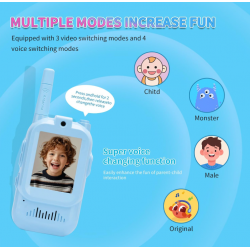 Tiesioginis vaizdo pokalbis realiu laiku: vaikai gali matyti vieni kitus iš karto per integruotą kamerą ir ryškų LCD ekraną, todėl bendravimas tampa dar įdomesnis ir interaktyvesnis.