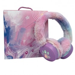 Žieminės bevielės ausinės su pūkeliu - Violetinė
